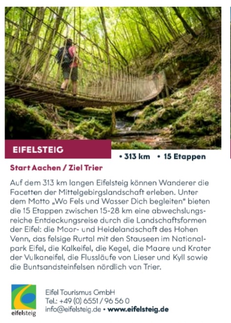Weitere Informationen über die Freizeitangebote finden Sie über die Webseite: https://www.eifel.info/